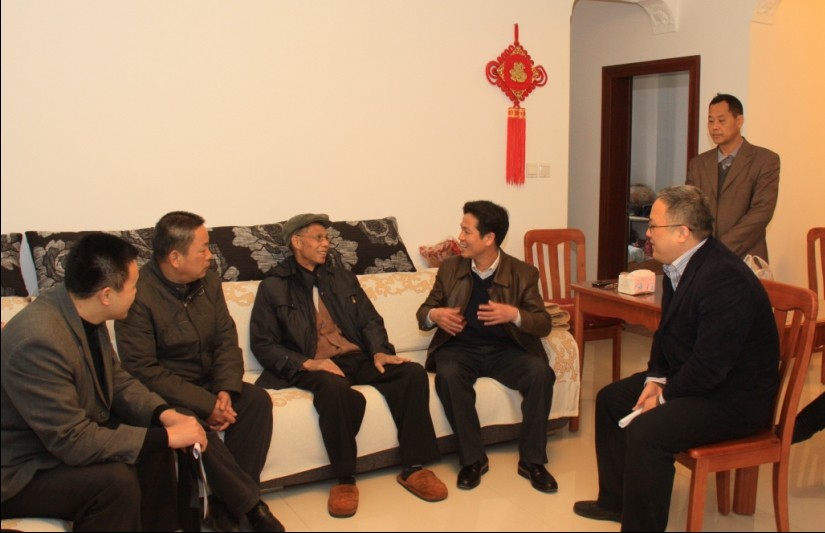 集團(tuán)公司董事長(zhǎng)朱堅(jiān)和(左四)、黨委副書記張友坐(左二)慰問(wèn)困難職工