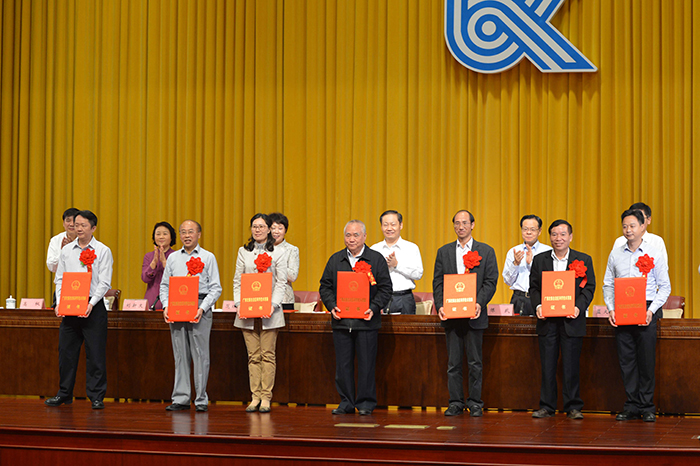 11月3日,2015年廣西科學技術獎勵大會暨科技成果轉化大行動啟動會在南寧舉行。自治區(qū)黨委書記、自治區(qū)人大常委會主任彭清華出席大會,自治區(qū)主席陳武在會上講話,并共同給獲獎代表頒獎。