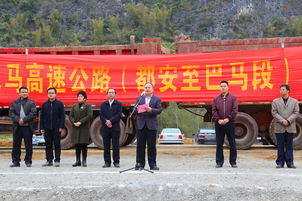 同日,賀州至巴馬高速公路(都安至巴馬段)建設(shè)指揮部正式揭牌成立,集團(tuán)公司副董事長(zhǎng)、總經(jīng)理、黨委副書(shū)記唐咸秋在揭牌儀式上對(duì)指揮部全體人員提出了殷切的期望。