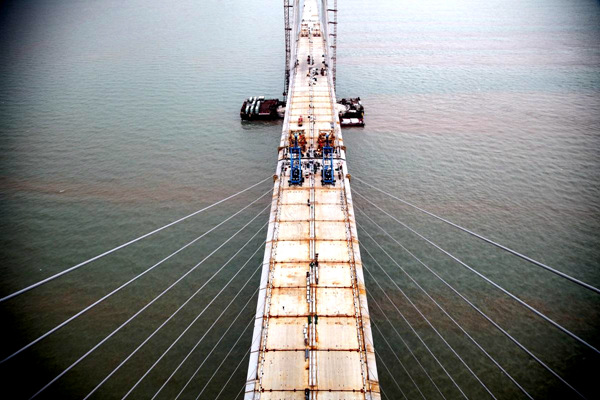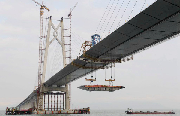 參建以來,該公司抽調(diào)了精干的技術(shù)管理團(tuán)隊(duì)常駐大橋施工現(xiàn)場(chǎng),建立了高效的施工監(jiān)控組織機(jī)構(gòu)。技術(shù)人員在伶仃灣海面上連續(xù)晝夜備戰(zhàn),克服了海面風(fēng)浪大、海上工作平臺(tái)簡陋等重重困難,攻克了橋梁節(jié)段吊裝溫差影響大、拼裝就位控制影響因素多等技術(shù)難題,為港珠澳大橋的順利施工提供了強(qiáng)有力的技術(shù)支撐。