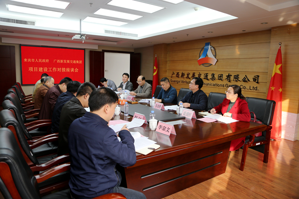 1月24日,來賓市人民政府副市長(zhǎng)韋平率隊(duì)來訪,與集團(tuán)公司黨委副書記、副董事長(zhǎng)、總經(jīng)理唐咸秋等領(lǐng)導(dǎo)進(jìn)行高速公路及路網(wǎng)建設(shè)項(xiàng)目工作對(duì)接。