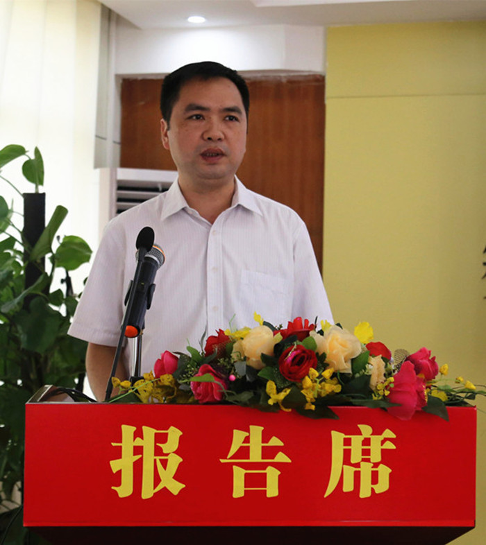 圖二:新恒通公司黨委副書記、副董事長、總經(jīng)理、總工程師藍日彥在本部站為活動致辭