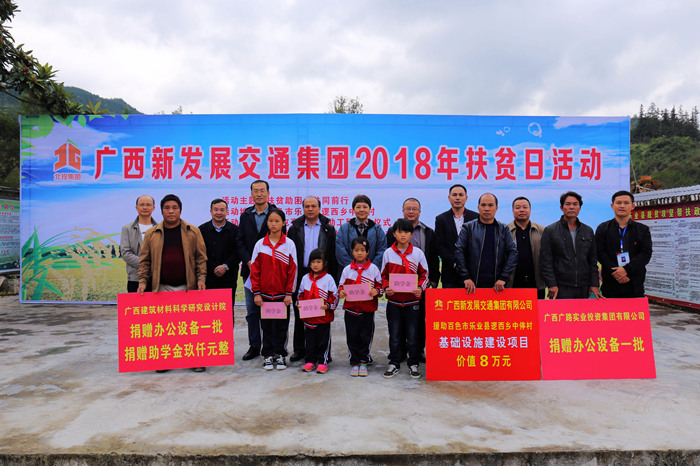2018年10月17日是我國第5個扶貧日,按照自治區(qū)統(tǒng)一部署,新發(fā)展交通集團以“扶貧助困 共同前行”為主題,深入環(huán)江縣、樂業(yè)縣、合山市5個扶貧聯(lián)系村開展走訪慰問、基礎設施建設及產(chǎn)業(yè)項目援助、金秋助學、志愿聯(lián)建等活動。