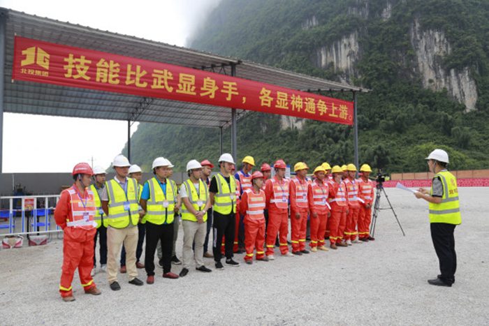 9月10日—11日,自治區(qū)企事業(yè)工會(huì)和北投集團(tuán)工會(huì)共同聯(lián)合舉辦“當(dāng)好主人翁 建功新時(shí)代”慶祝新中國成立70周年“北投工匠”職業(yè)技能競(jìng)賽。競(jìng)賽由新發(fā)展交通集團(tuán)、羅城縣人民政府承辦,賽場(chǎng)設(shè)于正在建設(shè)中的融水至河池高速公路,吸引了北投集團(tuán)高速公路建設(shè)項(xiàng)目的10個(gè)參建單位共132名基層作業(yè)人員同臺(tái)競(jìng)技。